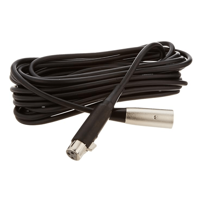 Cabo resistente, 7,5 m, equilibrado para operação de baixa impedância. Possui conector preto na extremidade do microfone para baixa visibilidade