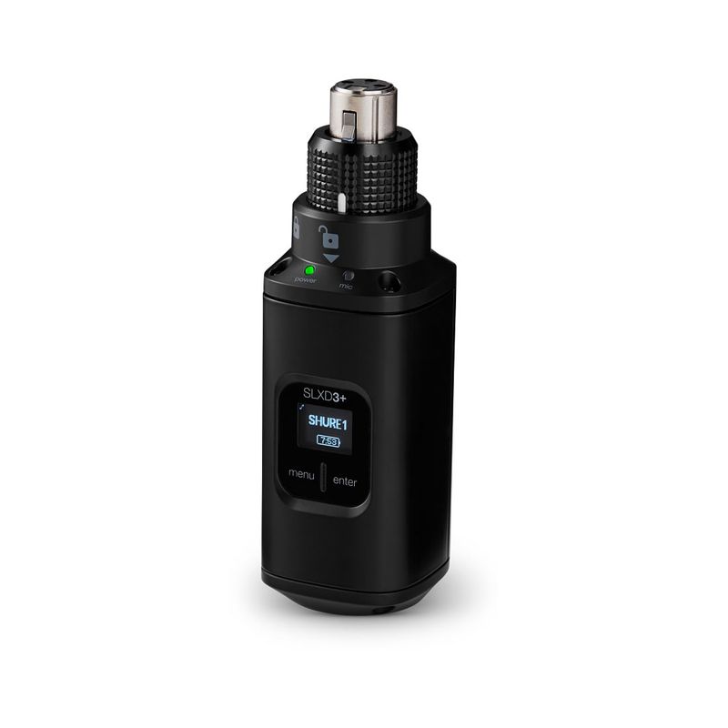 para uso com microfones XLR. O SLXD3+ possui um mecanismo de anel de travamento patenteado para